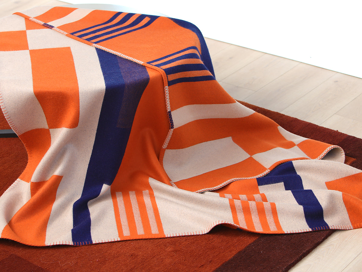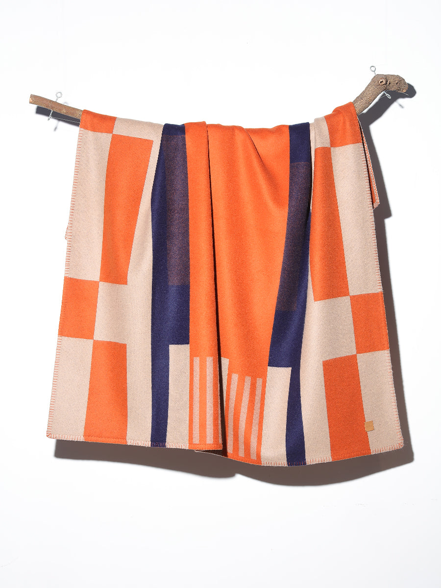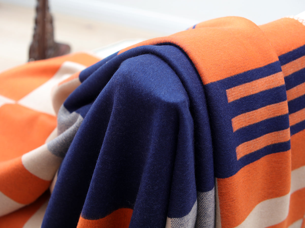 Wrap yourself in the warmth and elegance of this reversible cashmere throw. Crafted from the finest cashmere, it features a stunning jacquard pattern in vibrant shades of orange. The soft and luxurious feel of the cashmere, combined with the intricate design, makes this thow a timeless piece.