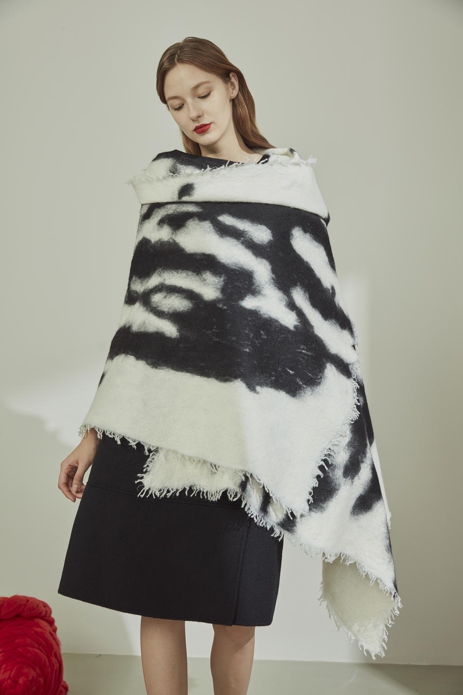 Fully hand-patted cashmere scarf using ancient Mongolian felting technique with raw cashmere material. One of a kind art piece through 12-hour elaborate process. Designed by Junko Koshino.